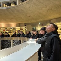Αρχικά επισκέφθηκαν το στολίδι και κόσμημα αρχιτεκτονικής του Πανεπιστημίου, τη Βιβλιοθήκη «Στέλιος Ιωάννου» με την οποία εντυπωσιάστηκαν, όπως και όλοι όσοι την επισκέπτονται για πρώτη φορά.