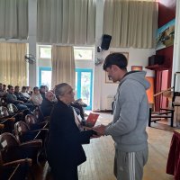 Στην κ. Μάντολες ο μαθητής μας Γεώργιος Μελετίου, του τμήματος Γραφικών Τεχνών του Γ’ έτους ΘΕΓ3, προσέφερε σαν αναμνηστικό δώρο μια πλακέτα με έργο που σχεδίασε ο ίδιος στο πλαίσιο Διαγωνισμού για τη συμπλήρωση 50 χρόνων από την τουρκική εισβολή. Το σχέδιο που ονόμασε «Το φως της Ειρήνης μέσα από τις Στάχτες», αποτυπώνει την τραγωδία και την ελπίδα καθώς και τη σύγκρουση ανάμεσα στην καταστροφή και τη διαρκή επιθυμία για ειρήνη.