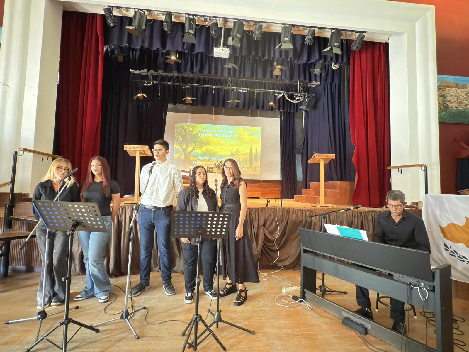 Σήμερα, οι μαθητές της Α΄ ΤΕΣΕΚ Λεμεσού διοργάνωσαν με τους καθηγητές τους καλλιτεχνική εκδήλωση, με ποιητικό λόγο, τραγούδια και προβολές, για να τιμήσουν την 65η Επέτειο της Ανακήρυξης της Κυπριακής Δημοκρατίας. Η εκδήλωση μάς πρόσφερε τη δυνατότητα να αντιληφθούμε ότι ο συλλογικός αγώνας και η ενότητα επέτρεψαν στους Κυπρίους να απολαύσουν το αγαθό της Κυπριακής Δημοκρατίας, το οποίο καλούμαστε να υπερασπιστούμε όσο ποτέ άλλοτε σήμερα.