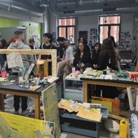 Τους μαθητές και μαθήτριες συνόδευσαν οι εκπαιδεύτριες Γραφικών Τεχνών κ. Οριάνα Ονησιφόρου και κ. Γιώτα Λουκαΐδου.