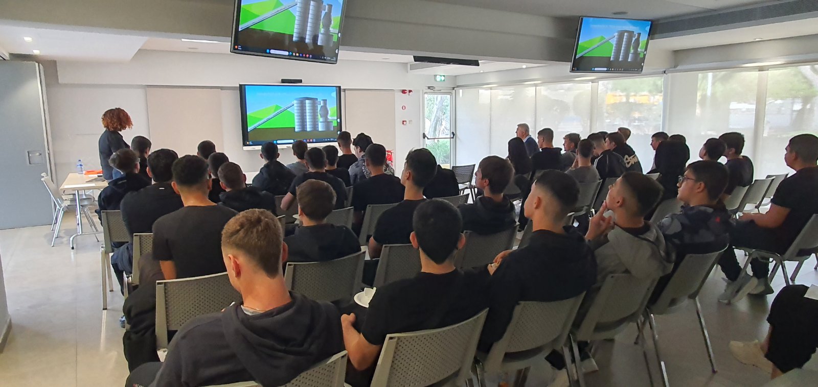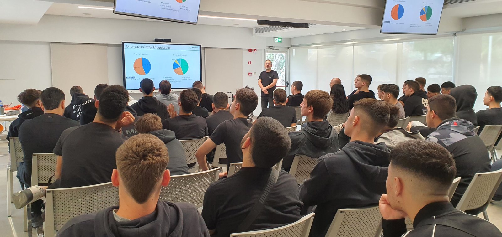 Αρχικά, οι μαθητές παρακολούθησαν μια σύντομη διάλεξη σχετικά με τη λειτουργία και τον κύκλο της παραγωγικής διαδικασίας της Τσιμεντοποιίας και έπειτα, ενημερώθηκαν για τις ευκαιρίες εργοδότησης και πρακτικής εξάσκησης στα διάφορα τμήματα και πιο συγκεκριμένα σε θέσεις, οι οποίες αφορούν στις δικές τους ειδικότητες.
